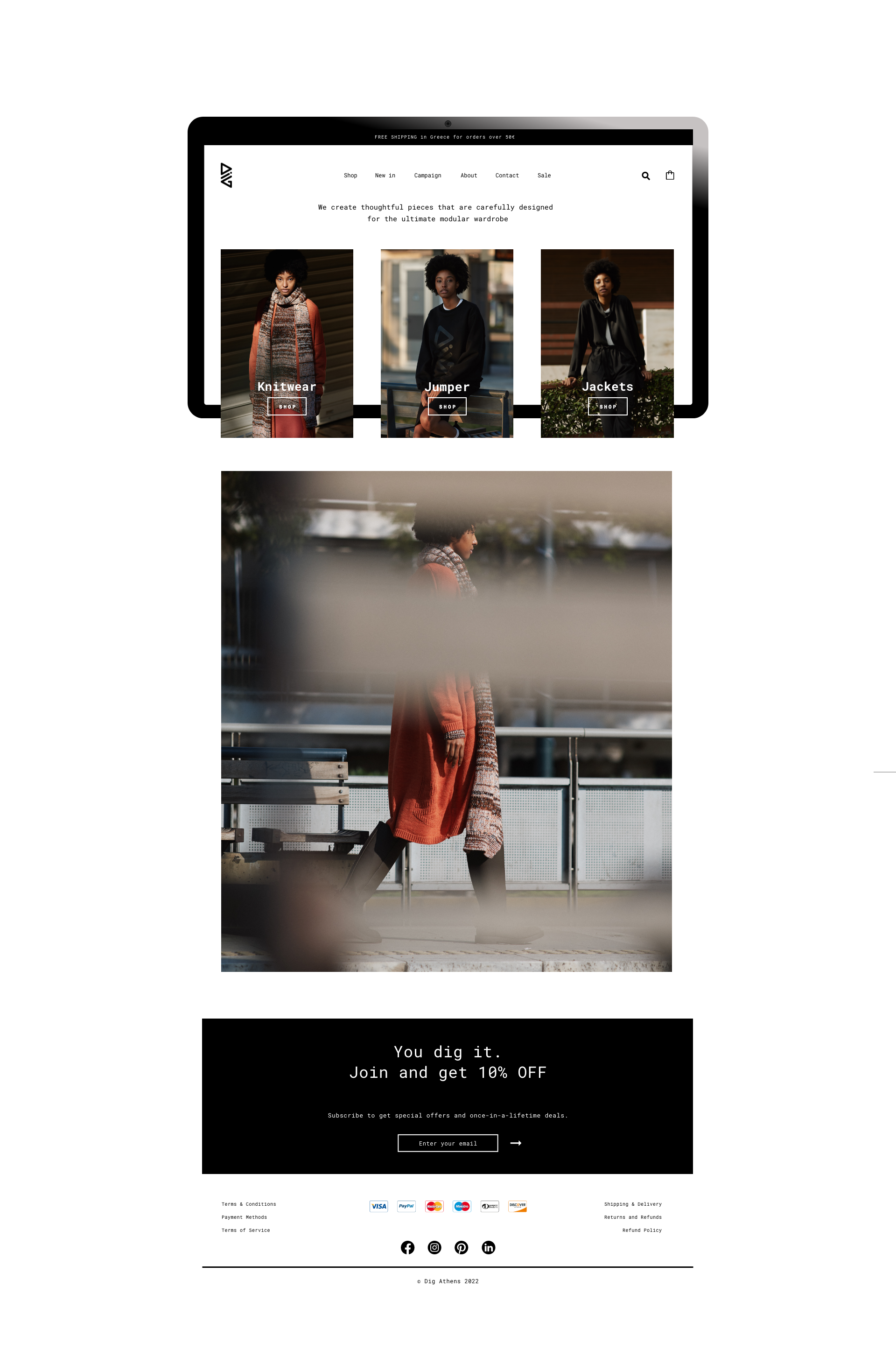 Website for DIG Athens, an Athens based fashion label