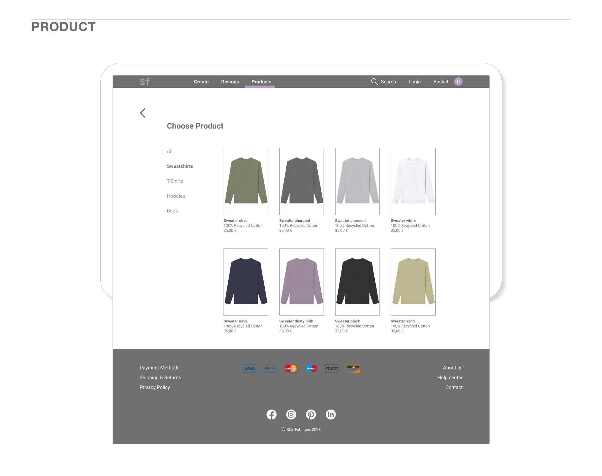 Responsive website for personalised sweatshirts